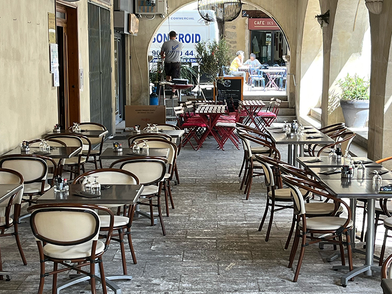 Sur nos belles terrasses ou en salle, vous serez confortablement installé idéalement placé au centre de Nyons