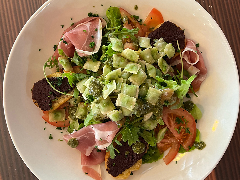 charcuterie, pommes de terre et salade.